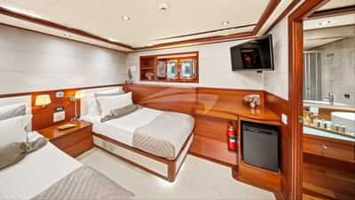 Le cabine ospiti comprendono una suite principale con letto matrimoniale e bagno interno, 3 cabine con letto matrimoniale e bagno interno e una cabina con un letto singolo e un bagno interno.