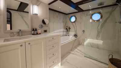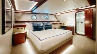 Le cabine ospiti comprendono una suite principale con letto matrimoniale e bagno interno, 4 cabine con letto matrimoniale e bagno interno e una cabina con letto singolo e bagno interno.