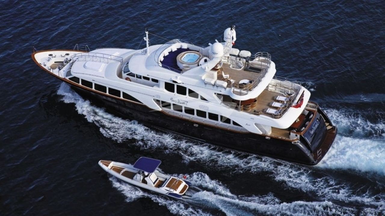 Il SEA BLUEZ da 120 piedi/36,6 m è stato costruito con uno scafo in vetroresina ed è alimentato da 2 x Caterpillar (1.549 CV) con una velocità di crociera di 14 nodi.