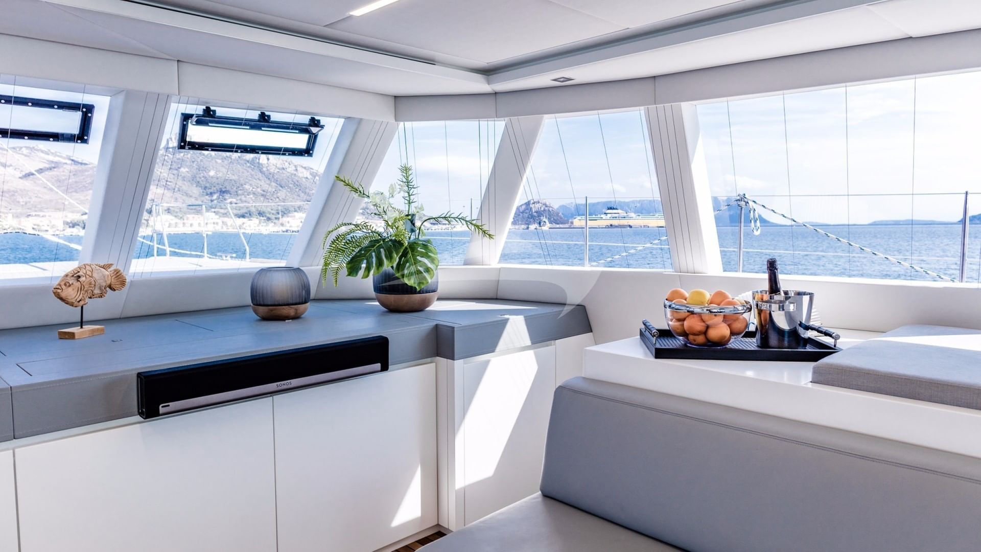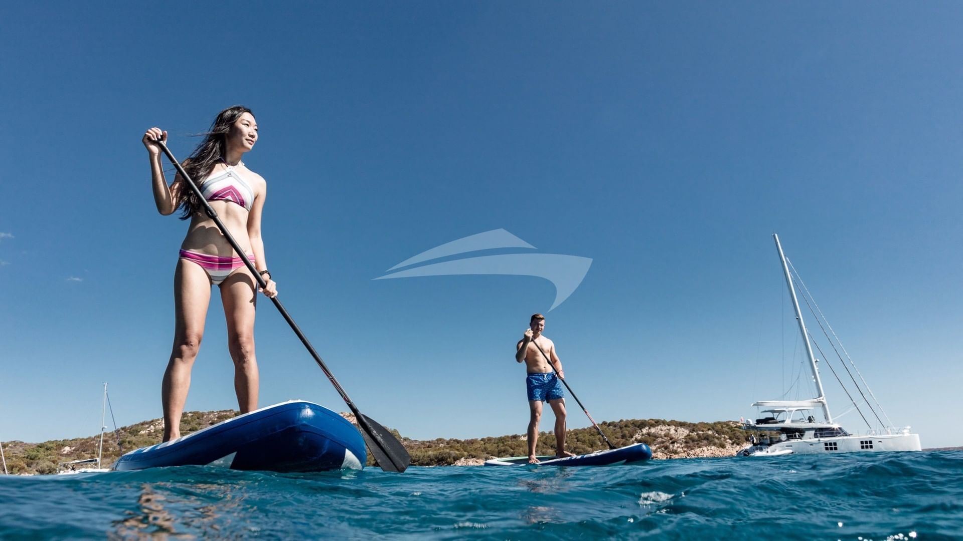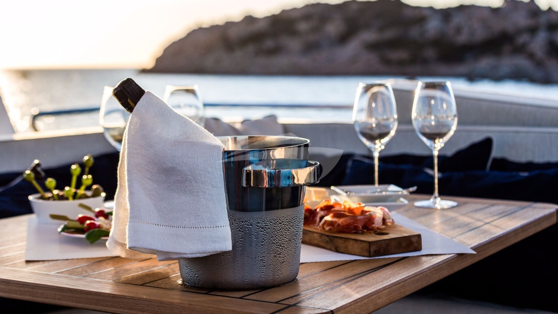 I servizi a bordo per gli ospiti charter includono aria condizionata, barbecue, macchina da caffè, doccia esterna, attrezzatura da pesca leggera, console di gioco, macchina per il ghiaccio, impianto audio interno, impianto audio esterno, TV satellitare, diete speciali, ombrelloni, lettini prendisole, piattaforma da nuoto, TV tutte le cabine, sala TV, bollitore d'acqua e Wi-Fi.