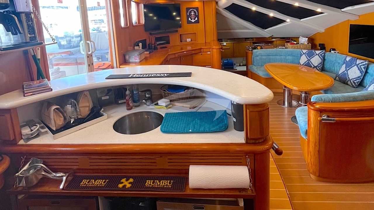 I servizi a bordo per gli ospiti charter includono aria condizionata, biblioteca, doccia esterna, attrezzatura da pesca leggera, macchina per il ghiaccio, sistema audio interno, docking station per iPod, server musicale MP3, sistema audio esterno, diete speciali, lettini prendisole, piattaforma da nuoto, TV tutte le cabine, sala TV, bollitore d'acqua e Wi-Fi.