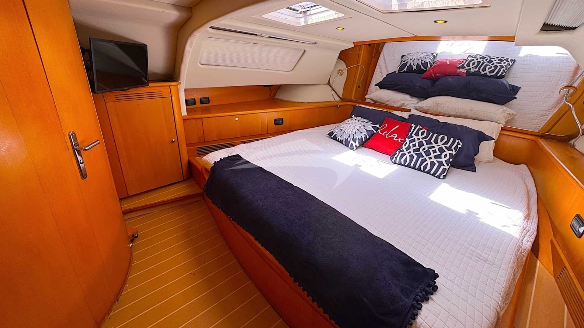 Le cabine ospiti comprendono 4 cabine con letto matrimoniale e bagno privato e una suite principale con letto king size e bagno privato situato a prua.