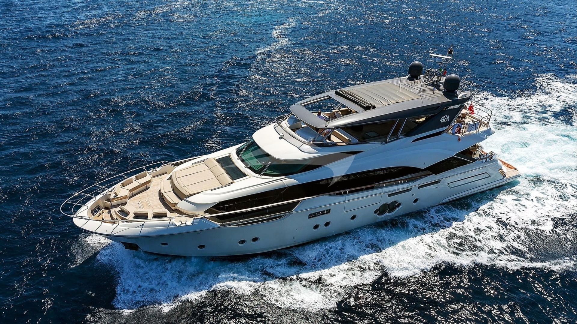 I servizi a bordo per gli ospiti charter includono aria condizionata, vasca idromassaggio sul ponte e stabilizzatori all'ancora.