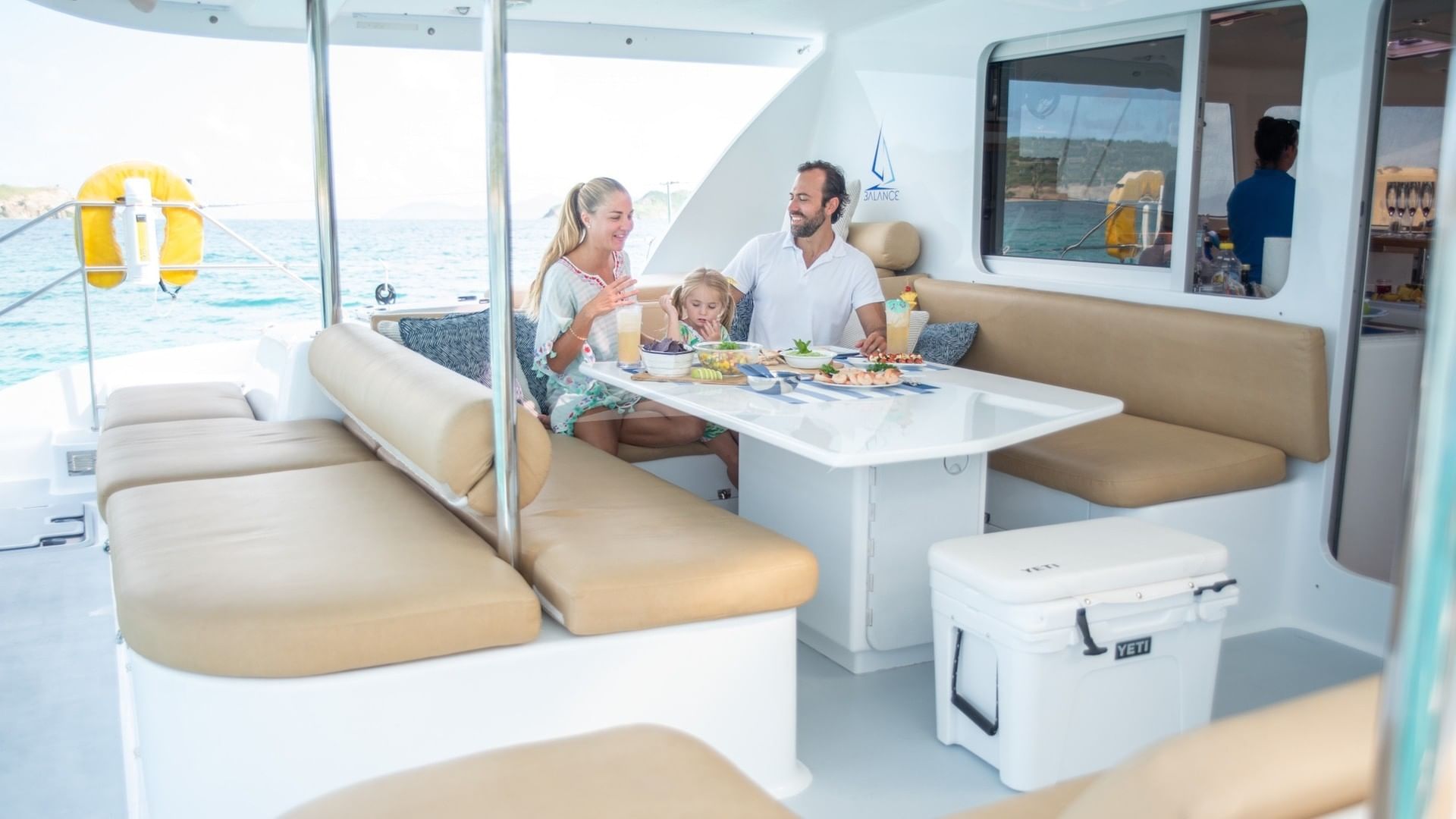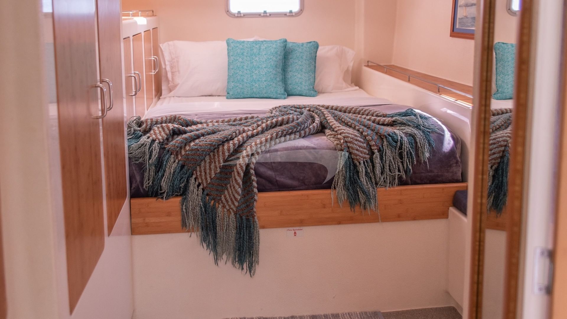 SILVER GIRL può ospitare 7 persone in 3 cabine composte da una suite principale con letto king size e bagno interno, cabina con letto king size e bagno interno e cabina con letto queen size e letto pullman e bagno interno.