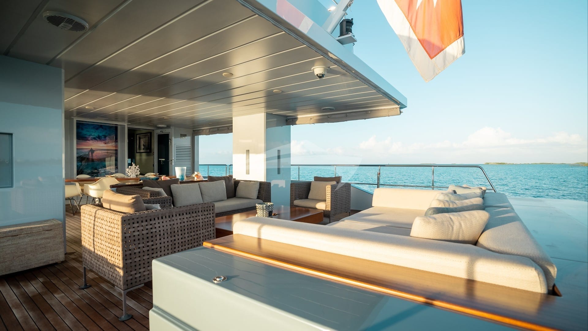 I servizi a bordo per gli ospiti charter includono aria condizionata, karaoke, sistema audio esterno, stabilizzatori all'ancora, lettini prendisole, lettini, piattaforma da nuoto, TV esterna e Wi-Fi.