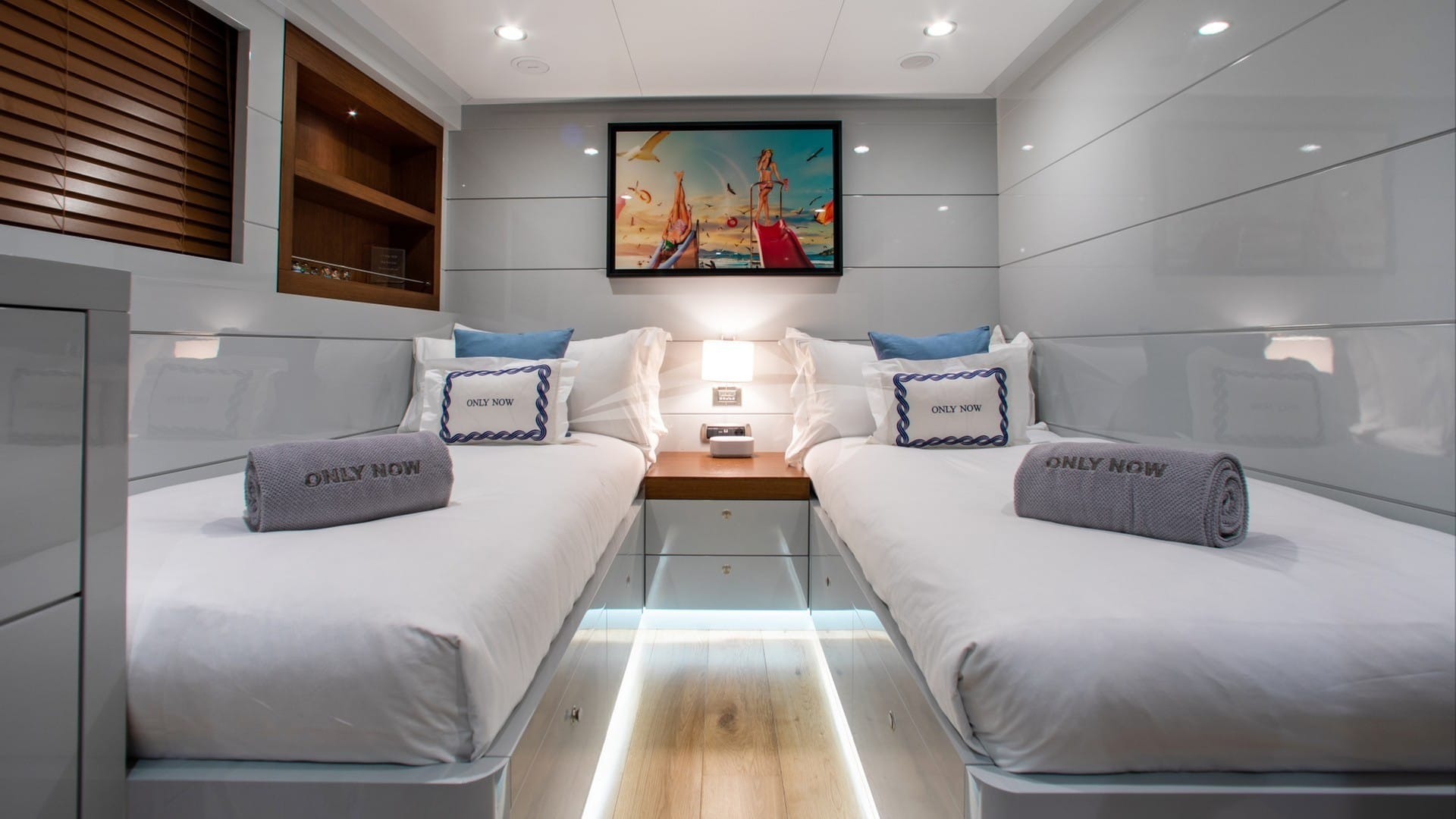 ONLY NOW è stato progettato per ospitare comodamente fino a 8 ospiti charter in 4 suite.