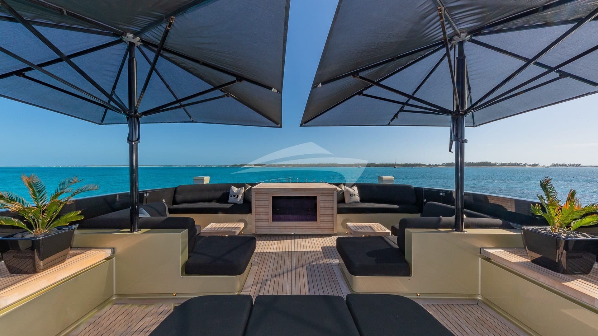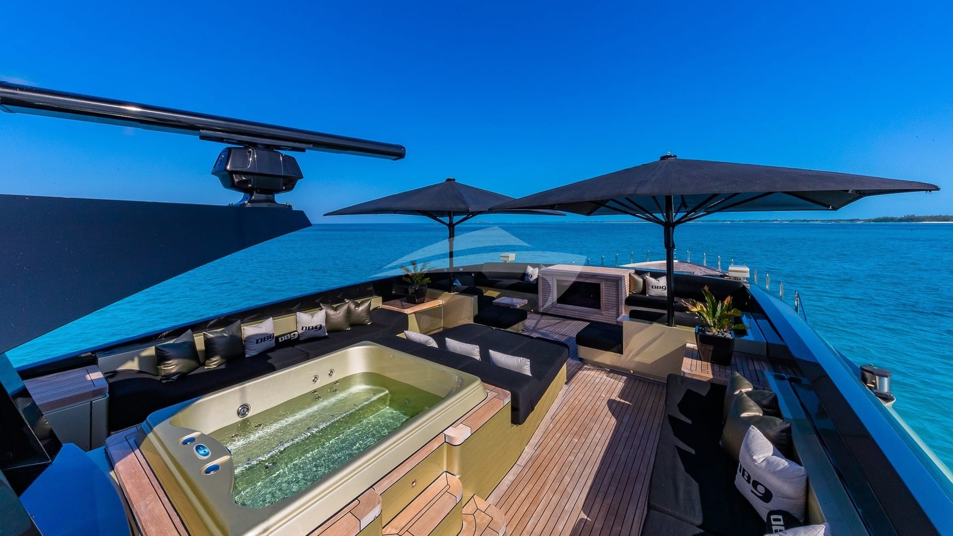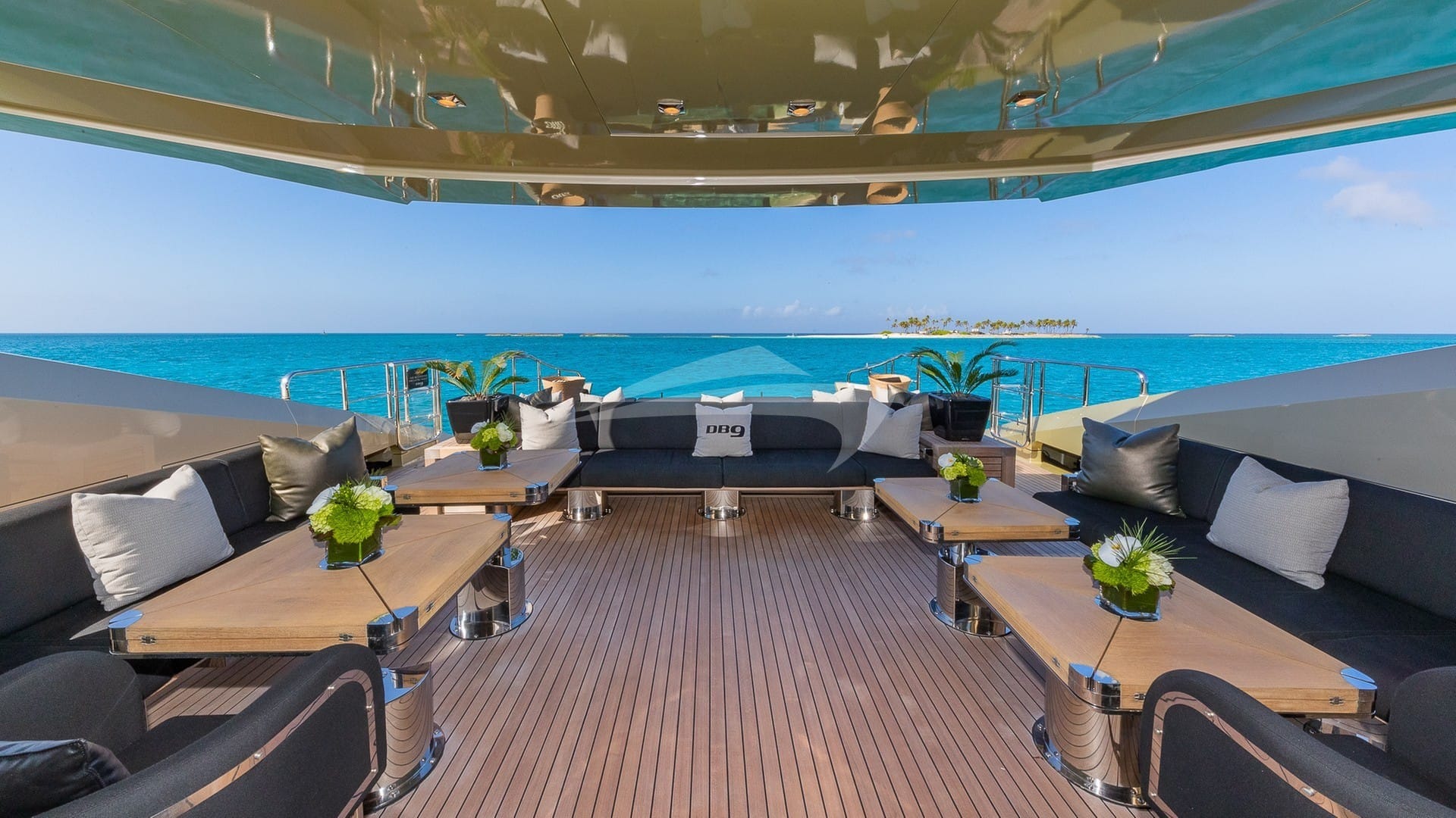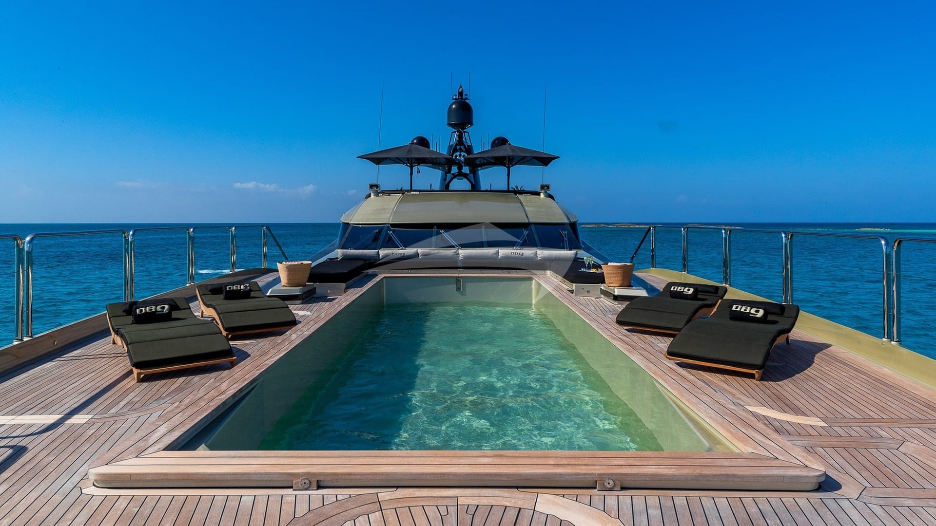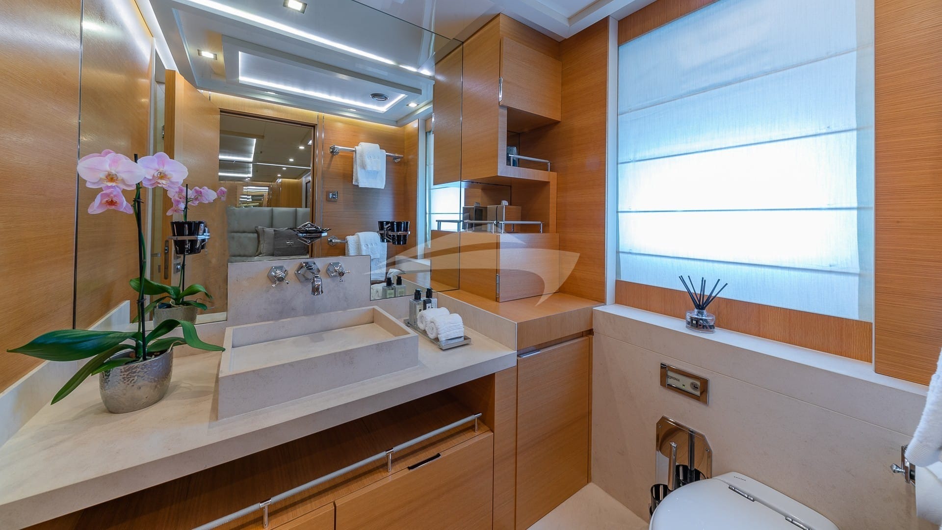 I servizi a bordo per gli ospiti charter includono aria condizionata, barbecue, attrezzatura sportiva, attrezzatura da pesca leggera, palestra, vasca idromassaggio sul ponte, sistema audio esterno, stabilizzatori all'ancora, lettini prendisole, lettini prendisole, piattaforma da nuoto, piscina, TV tutte le cabine, TV esterna e Wi-Fi.