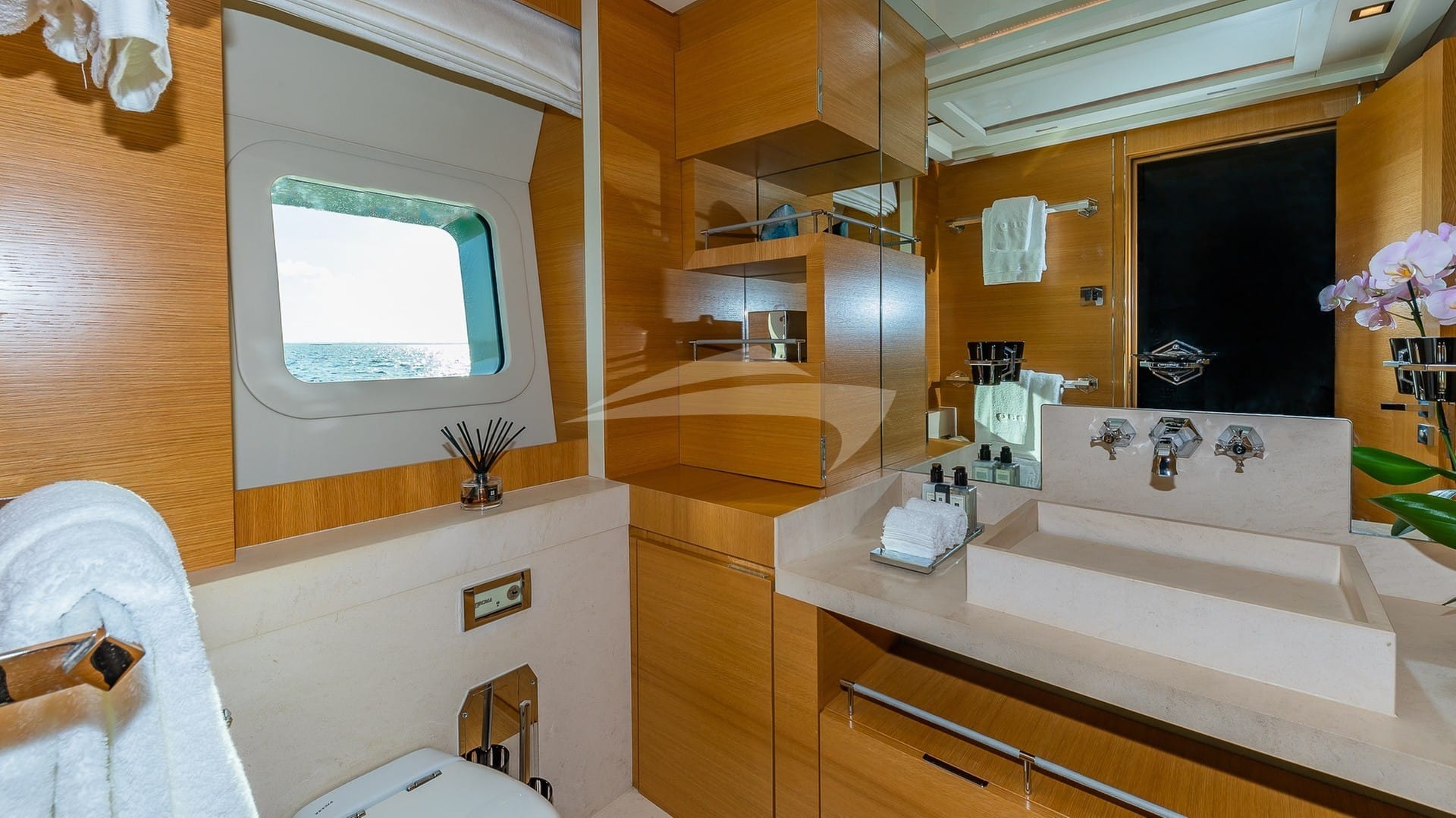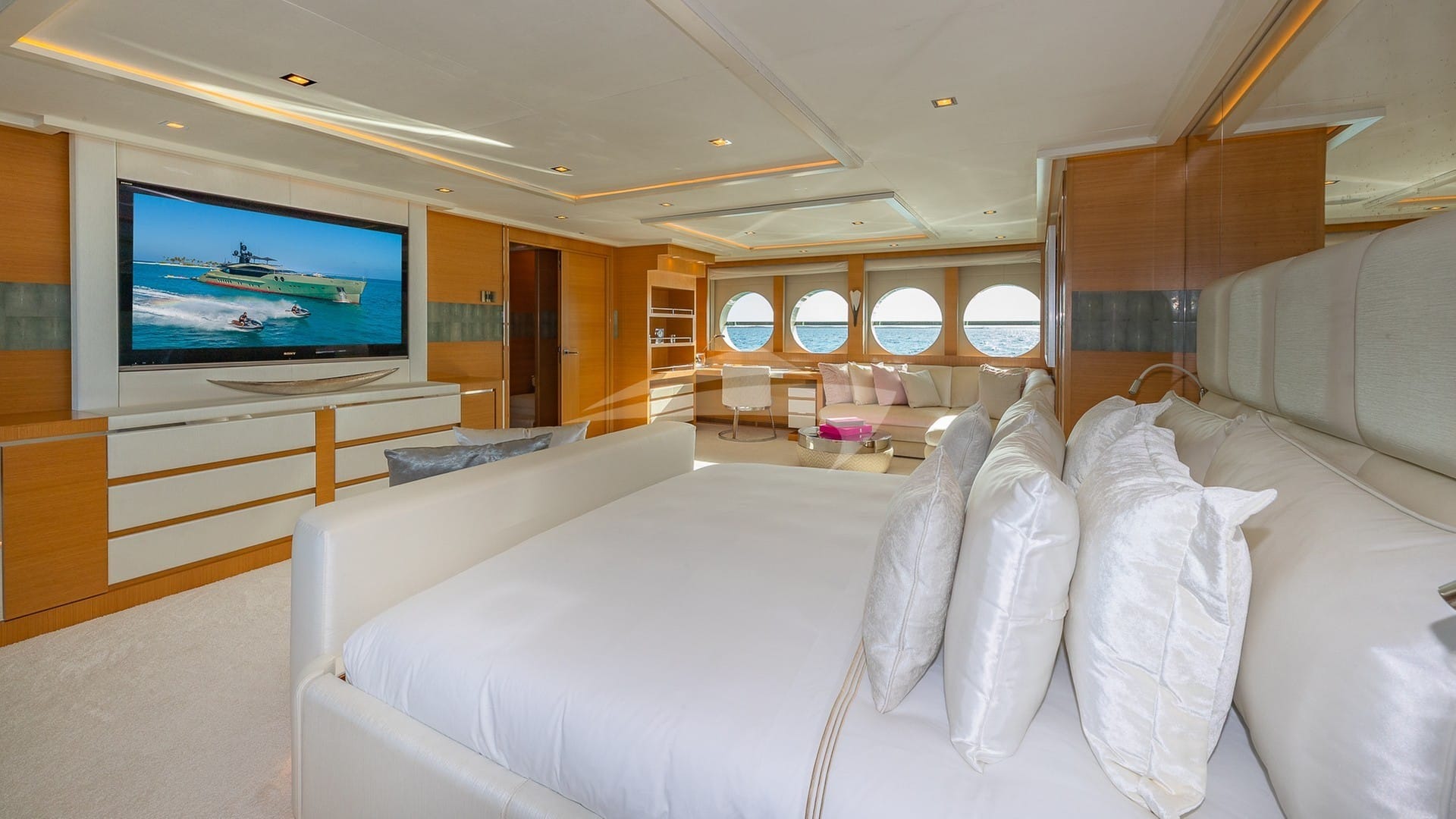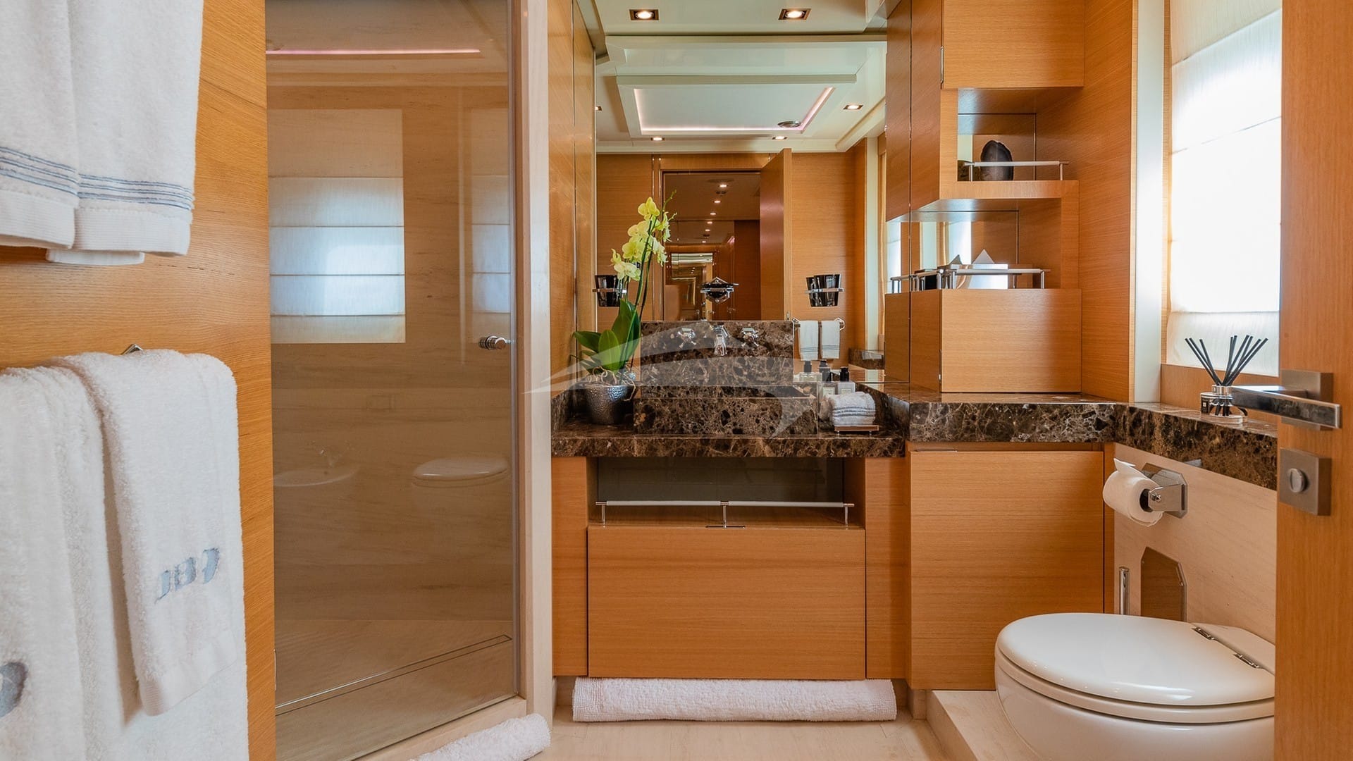 Le cabine ospiti comprendono una suite principale con letto king size e bagno privato, 2 cabine con letto matrimoniale e bagno privato, una suite VIP con letto matrimoniale e bagno privato e una cabina con letto matrimoniale e bagno privato e una cabina con letto matrimoniale e bagno privato.