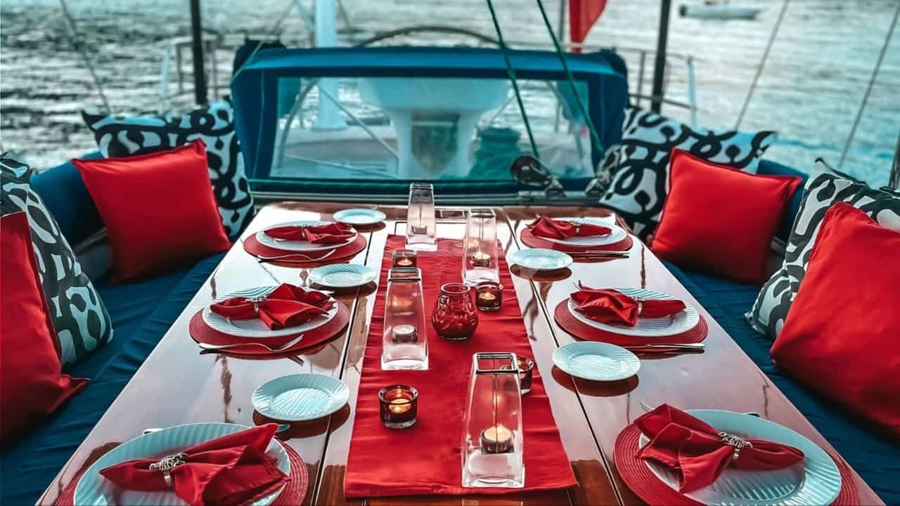 セーリングヨット「ダークスターオブロンドン」での豪華チャーターは、船長を含む3人の乗組員によって管理されます。