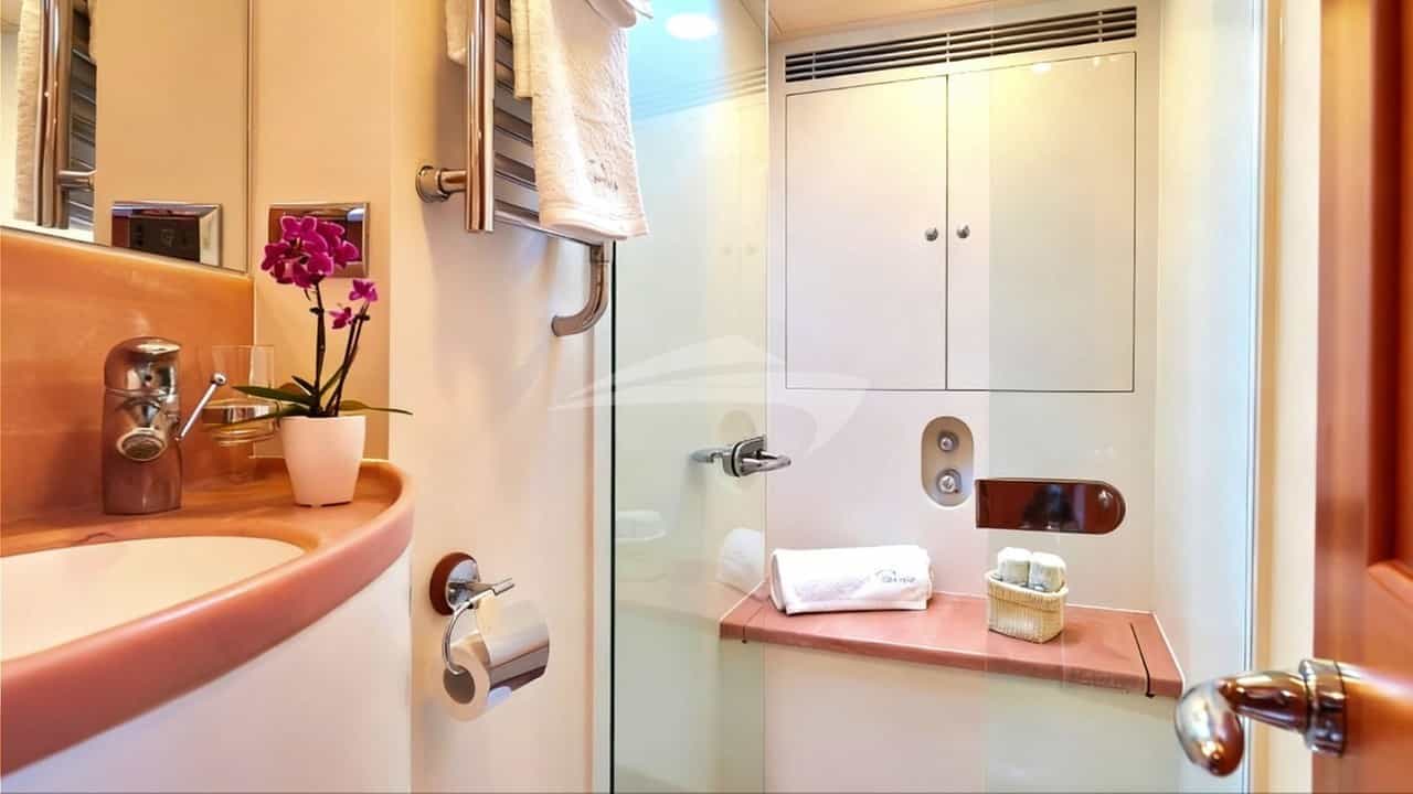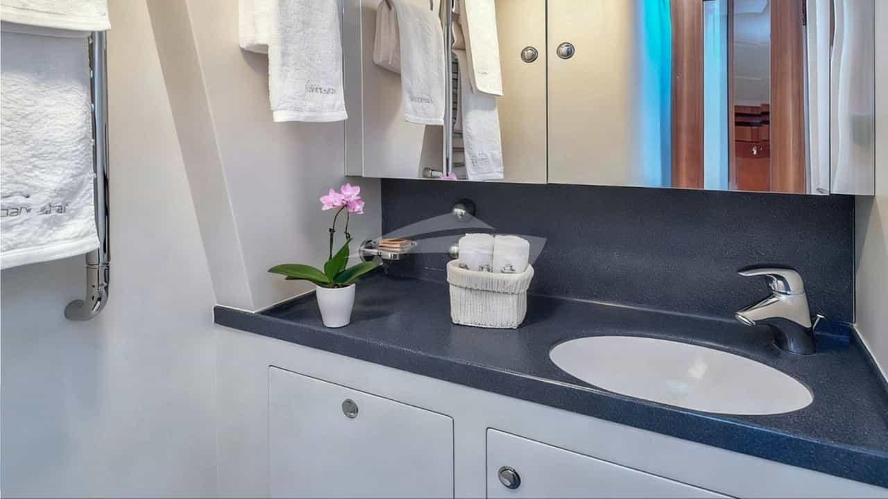 チャーターゲスト用の機内アメニティには、エアコン、ライトフィッシングギア、屋内オーディオシステム、屋外シネマ、サンパッド、サンデッキ、サンラウンジャー、スイムプラットフォーム、テレビプライマリーキャビン、テレビサルーン、Wi-Fiが含まれます。