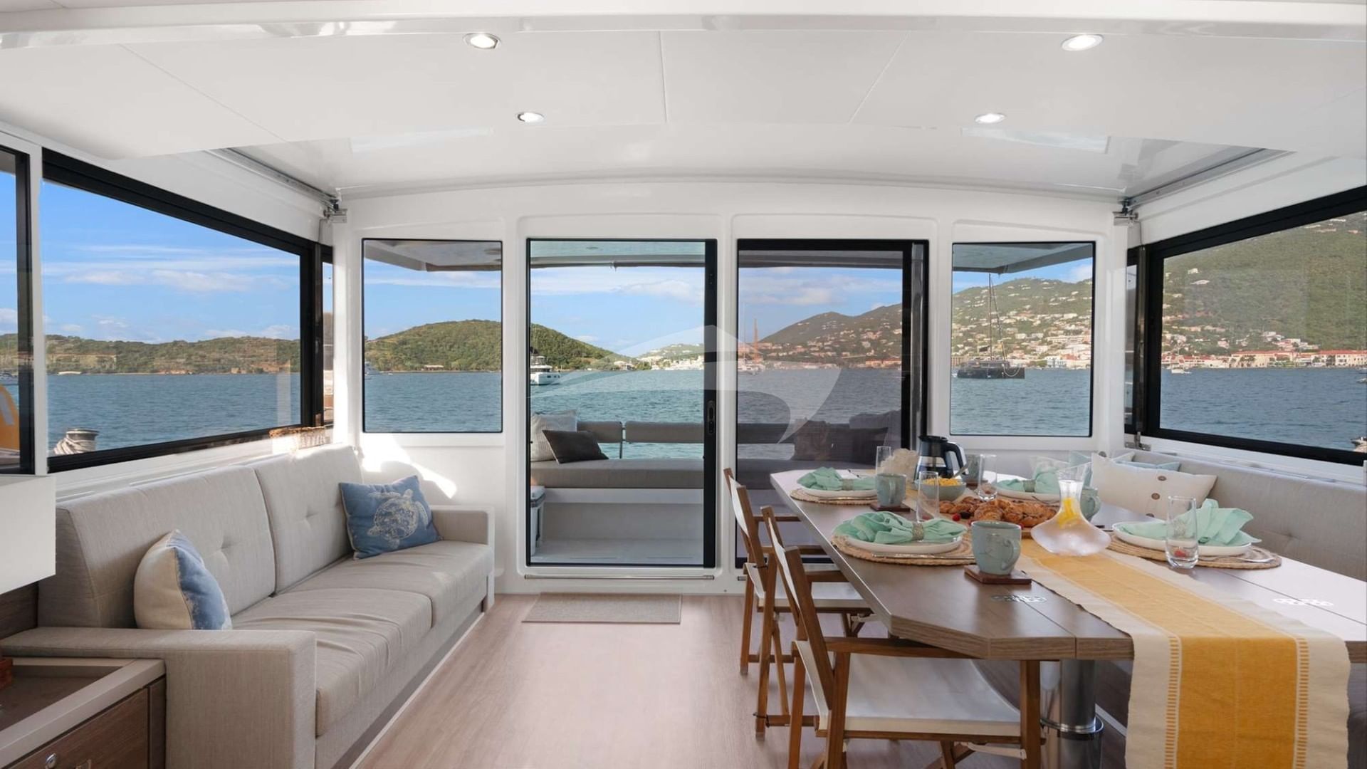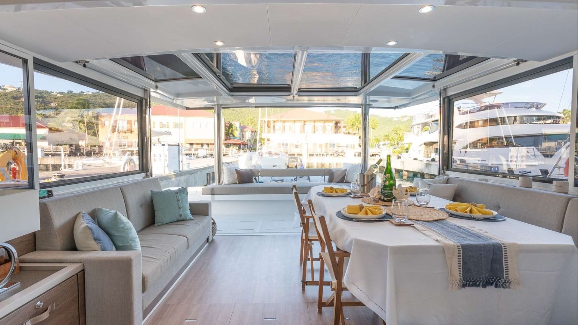 チャーターゲスト用の機内アメニティには、エアコン、バーベキュー、コーヒーマシン、屋外シャワー、軽釣具、油圧式スイムプラットフォーム、屋内オーディオシステム、iPodドック、ウォーターメーカー、Wi-Fiが含まれます。