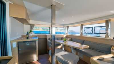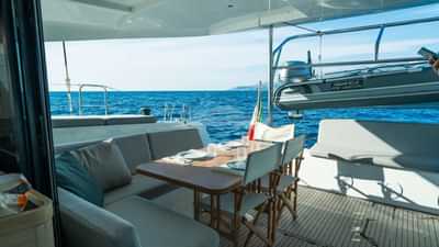チャーターゲスト用の機内アメニティには、エアコン、屋外シャワー、屋内オーディオシステム、iPodドック、Wi-Fiが含まれます。