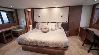 ゲストキャビンには、キングサイズベッド1台、専用バスルーム付きのプライマリスイート、クイーンサイズベッドと専用バスルーム付きのキャビン、ダブルベッドと専用バスルーム付きのキャビン、ツインベッド、専用バスルーム付きのキャビンがあります。
