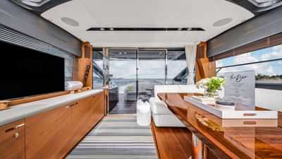 チャーターゲスト用の機内設備には、エアコン、バーベキュー、屋外シャワー、iPodドック、テレビサロンなどがあります。