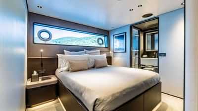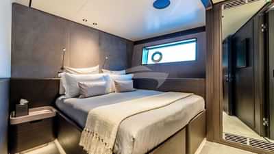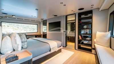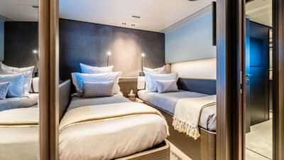 ゲストキャビンには、キングサイズベッド1台、専用バスルーム付きのプライマリスイート、クイーンサイズベッド1台、専用バスルーム付きのキャビン2つ、ツインベッドと専用バスルーム付きのキャビン2室があります。