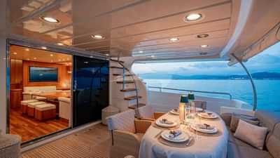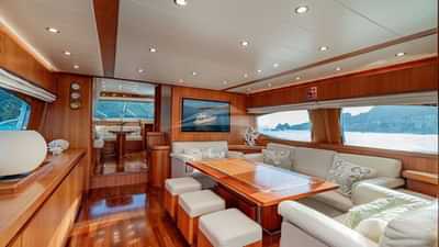 チャーターゲスト用の機内設備には、エアコン、屋外シャワー、屋内オーディオシステム、テレビサロンが含まれます。