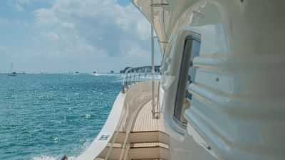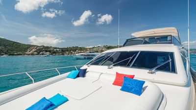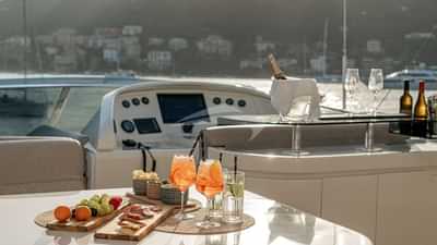 モーターヨット「ロックムーン」での豪華チャーターは、船長を含む3人のクルーが管理します。