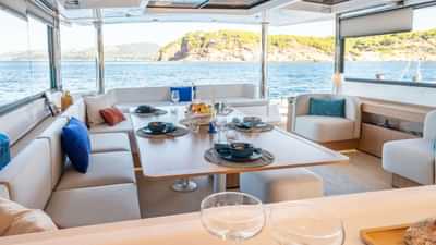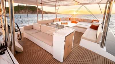 チャーターゲスト用の機内アメニティには、エアコン、バーベキュー、屋外シャワー、屋内オーディオシステム、テレビサルーン、Wi-Fiが含まれます。