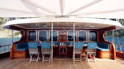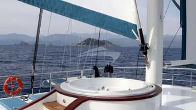 モーターヨット「クイーン・アトランティス」での豪華チャーターは、船長を含む4人のクルーが管理します。