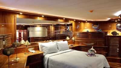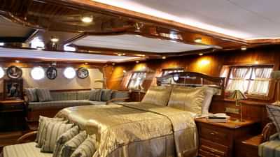 ゲストキャビンには、キングサイズベッド1台と専用バスルーム付きのプライマリースイート、キングサイズベッド1台と専用バスルーム付きのキャビン1室、ダブルベッド1台と専用バスルーム付きのキャビン4室、ツインベッド1台、専用バスルーム付きのキャビン2室があります。