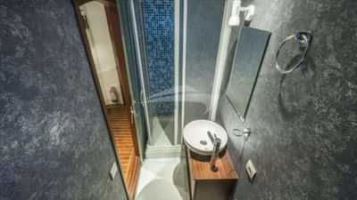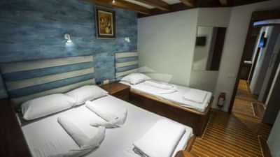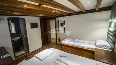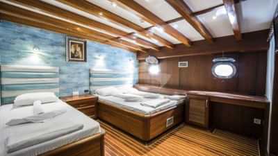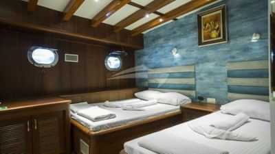 ゲストキャビンには、ダブルベッド1台と専用バスルーム付きのプライマリースイート、ダブルベッド1台と専用バスルーム付きのキャビン5室、ダブルベッド1台とプルマンベッド、専用バスルーム付きのキャビン8室があります。