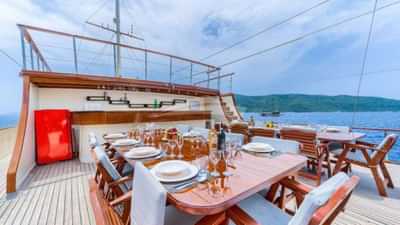 チャーターゲスト用の機内アメニティには、エアコン、屋外シャワー、屋内オーディオシステム、衛星テレビ、テレビサルーン、Wi-Fiが含まれます。