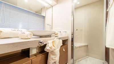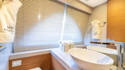 チャーターゲスト用の機内アメニティには、エアコン、屋外シャワー、屋内オーディオシステム、iPodドック、衛星テレビ、スタビライザーアットアンカー、スイムプラットフォーム、テレビサルーン、Wi-Fiが含まれます。