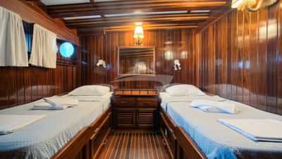ゲストキャビンは、ダブルベッド付きのプライマリースイート、ダブルベッド付きのキャビン、ツインベッド付きのキャビン8室で構成されています。
