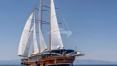 モーターヨットTHALASSAでの豪華チャーターは、船長を含む6人の乗組員が管理します。
