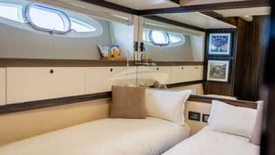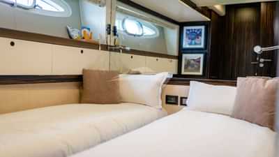 ゲストキャビンは、キングサイズベッド付きのプライマリスイート、クイーンサイズベッドとプルマンベッド付きのキャビン、ツインベッド付きのキャビン2つで構成されています。