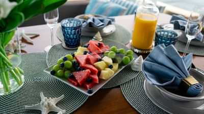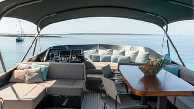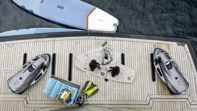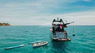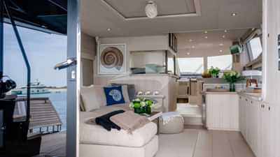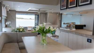 チャーターゲスト用の機内アメニティには、エアコン、バーベキュー、屋外シャワー、屋内オーディオシステム、iPodドック、衛星テレビ、スタビライザーアットアンカー、テレビサルーン、Wi-Fiが含まれます。