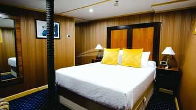 ゲストキャビンには、ダブルベッド1台、専用バスルーム付きのプライマリスイート、ダブルベッド1台、専用バスルーム付きのキャビン6室があります。