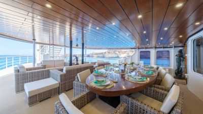 チャーターゲスト用の機内アメニティには、エアコン、屋外シャワー、屋内オーディオシステム、iPodドック、デッキのジャグジー、テレビサロンなどがあります。