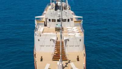 モーターヨットHARMONY IIでの豪華チャーターは、船長を含む9人の乗組員が管理します。