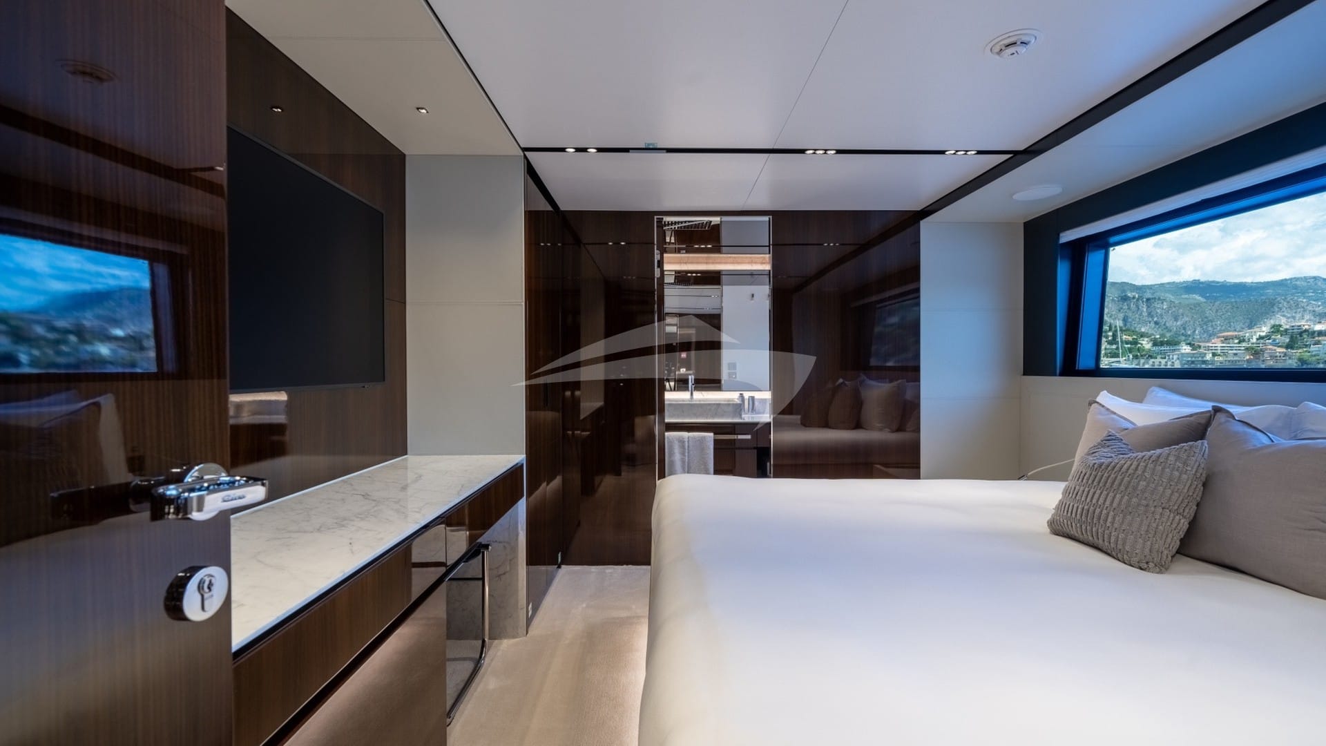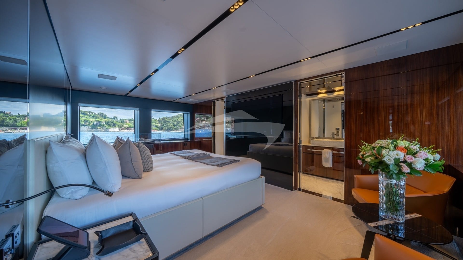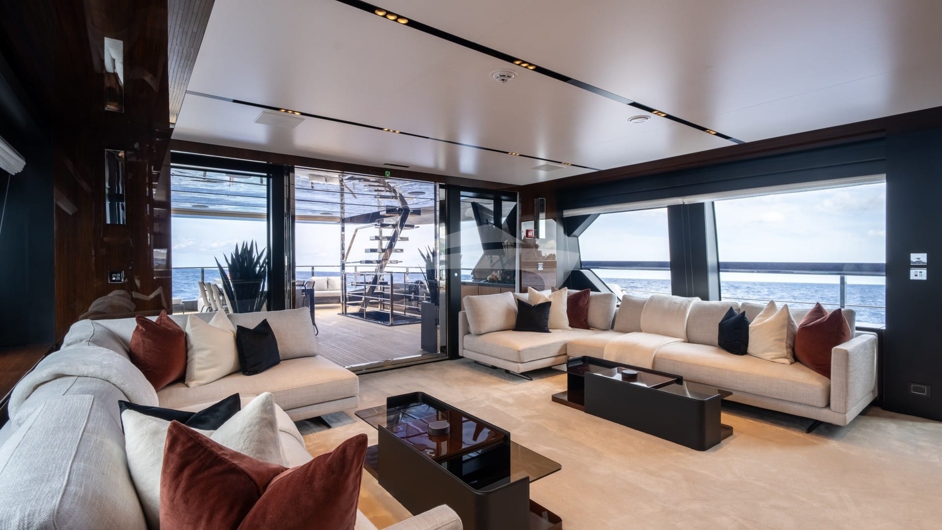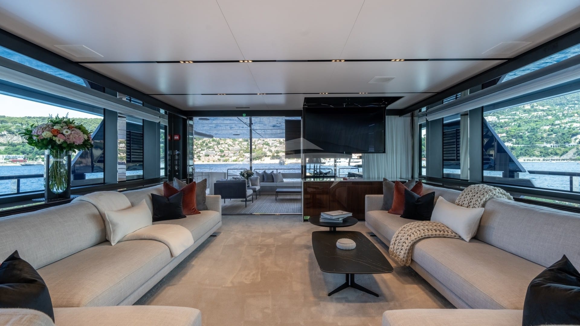 チャーターゲスト用の機内アメニティには、エアコン、屋外シャワー、ジム、屋内オーディオシステム、デッキのジャグジー、アンカー付きスタビライザー、スイムプラットフォーム、テレビサルーン、Wi-Fiが含まれます。
