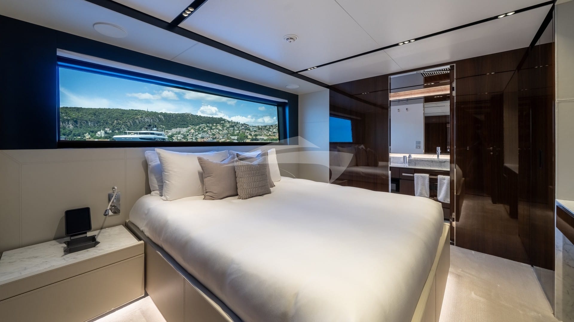ゲストキャビンは、正面にキングサイズベッド1台と専用バスルーム付きのプライマリースイート、キングサイズベッド1台、専用バスルーム付きのキャビン4室で構成されています。