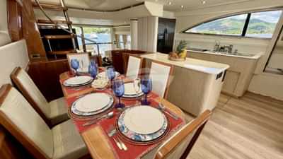 チャーターゲスト用の機内設備には、エアコン、バーベキュー、屋外シャワー、屋内オーディオシステム、スイムプラットフォーム、テレビサロンなどがあります。