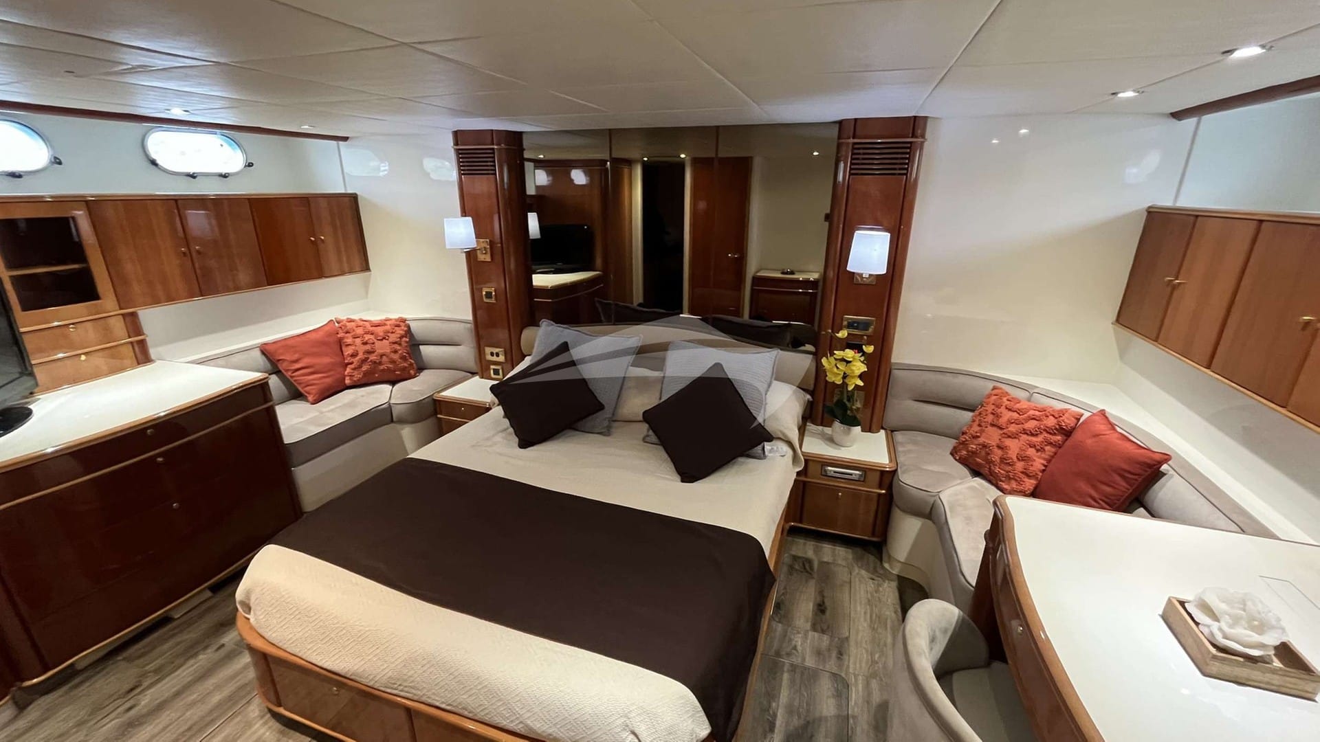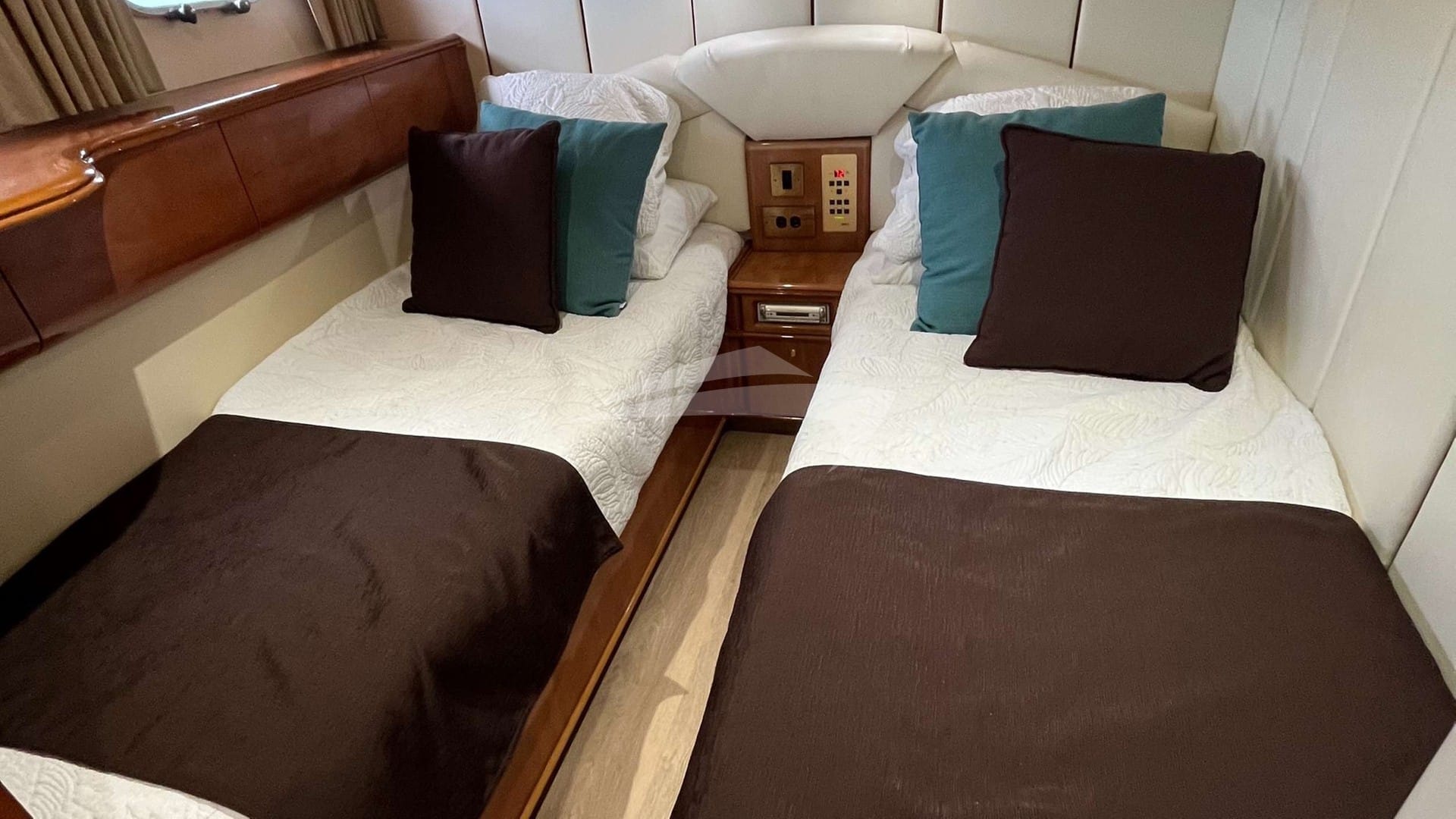 ゲストキャビンには、キングサイズベッド1台、専用バスルーム付きのプライマリスイート、クイーンサイズベッド1台、専用バスルーム付きのキャビン、ツインベッド付きのキャビン2台で構成されています。