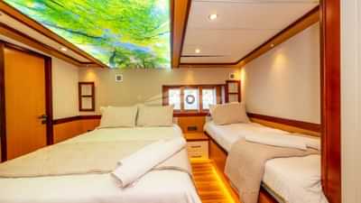 ゲストキャビンは、クイーンサイズベッド付きのプライマリースイート、クイーンサイズベッド付きの2つのキャビン、ダブルベッド付きの2つのキャビンで構成されています。