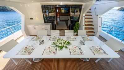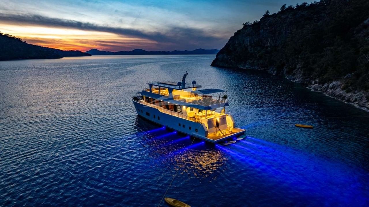 チャーターゲスト用の機内アメニティには、エアコン、屋内オーディオシステム、スイムプラットフォーム、テレビサルーン、Wi-Fiが含まれます。