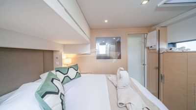 ゲストキャビンには、ダブルベッド1台、専用バスルーム付きのプライマリスイート、ダブルベッド1台、専用バスルーム付きのキャビン4室があります。