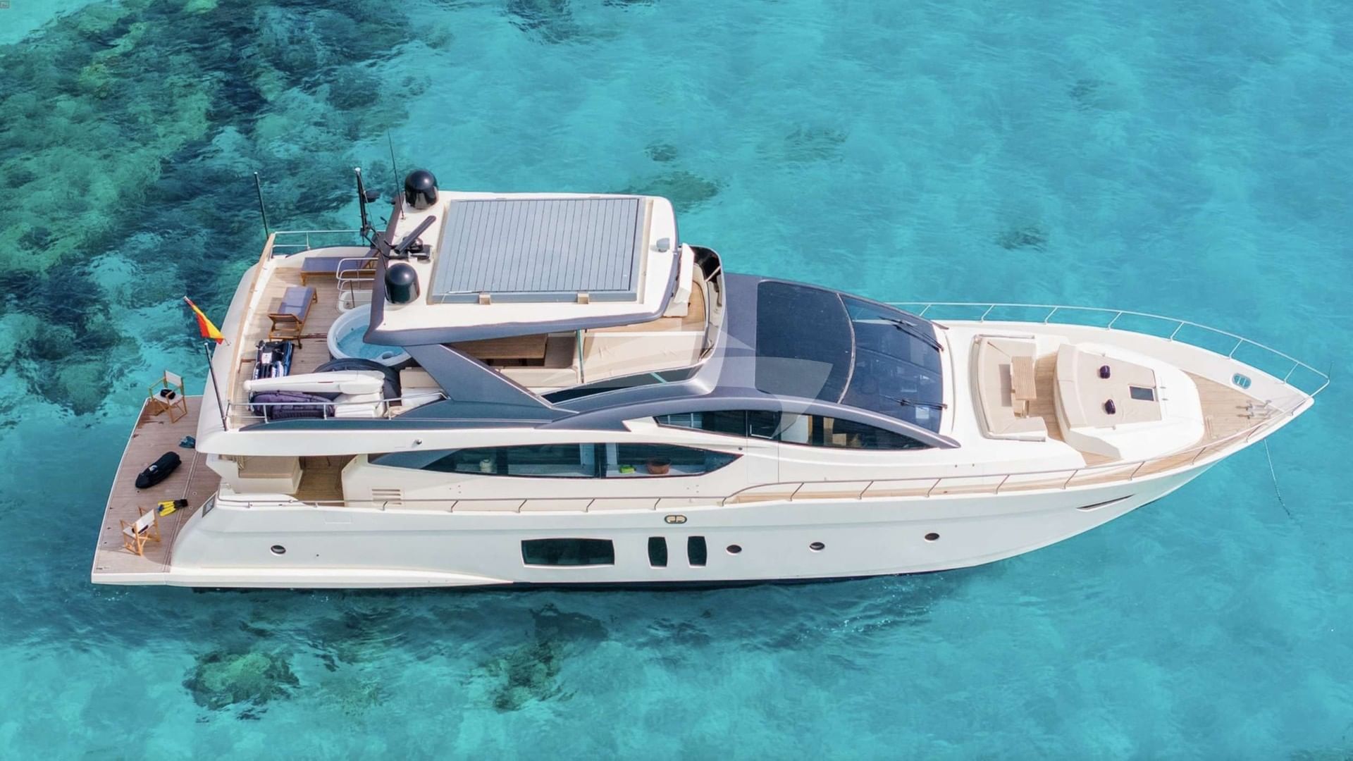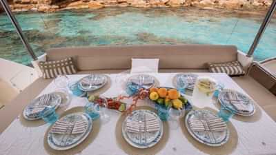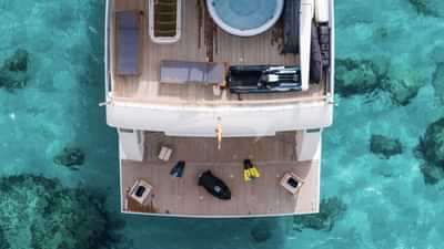 チャーターゲスト用の機内アメニティには、エアコン、スタビライザーアットアンカー、スイムプラットフォームなどがあります。