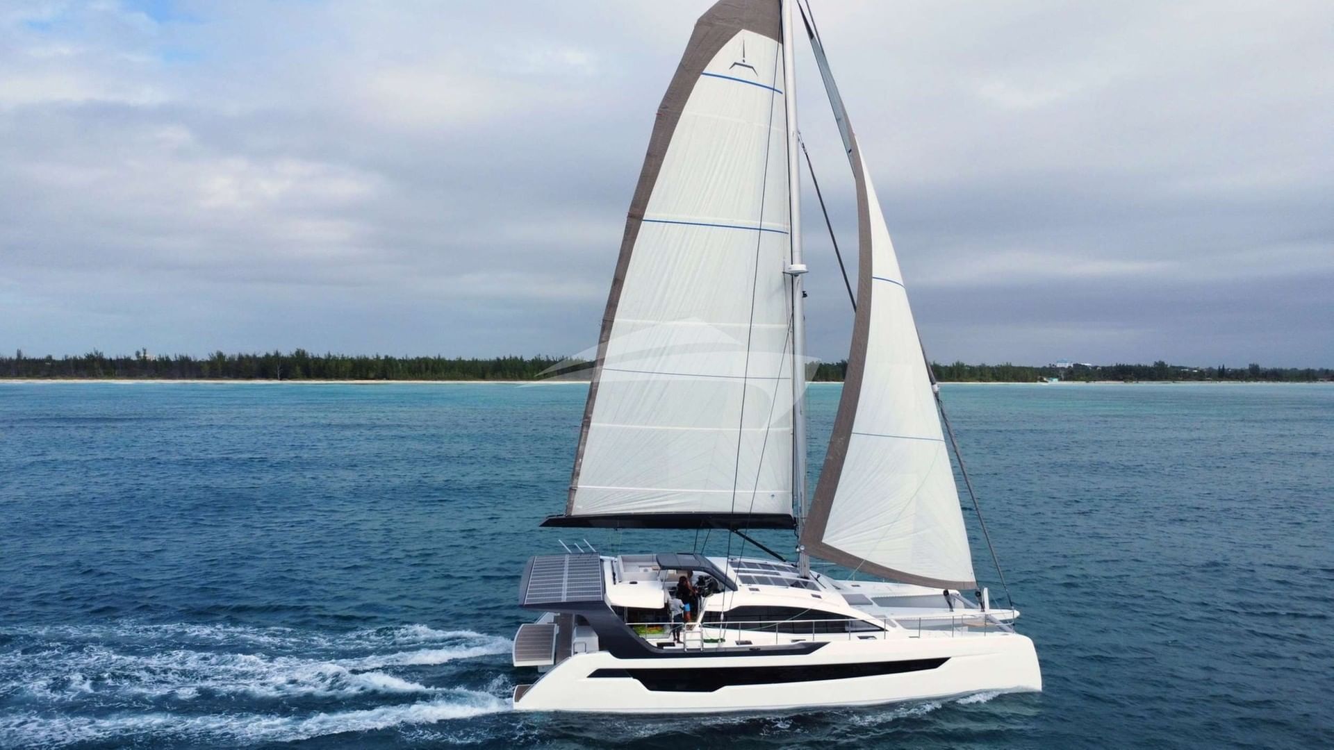 セーリングヨット「フライング・ホエール」での豪華チャーターは、船長を含む2人の乗組員が管理します。