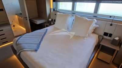 ゲストキャビンには、キングサイズベッド1台、専用バスルーム付きのプライマリスイート、クイーンサイズベッド1台、プルマンベッド1台、専用バスルーム付きのキャビン、ツインベッド、専用バスルーム付きのキャビン2室があります。