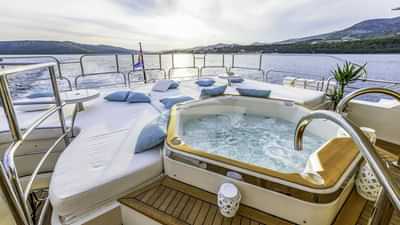 チャーターゲスト用の機内アメニティには、エアコン、デッキのジャグジー、アンカー付きスタビライザー、テレビサルーン、Wi-Fiなどがあります。