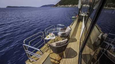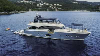 モーターヨット「ジョルジオ」での豪華チャーターは、船長を含む4人のクルーが管理します。