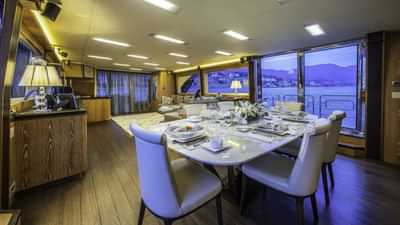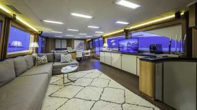 チャーターゲスト用の機内設備には、エアコン、スタビライザーアットアンカー、テレビサルーンなどがあります。