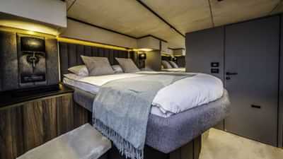 OVER THE MOONは、4つのスイートに最大8人のチャーターゲストを快適に収容できるように設計されています。