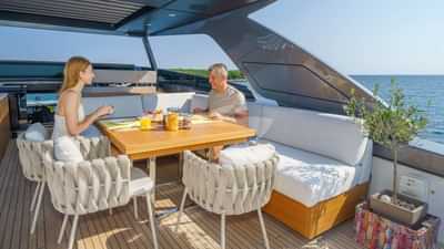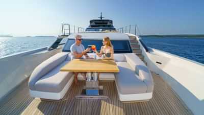モーターヨットPRIMUSでの豪華チャーターは、船長を含む5人の乗組員が管理します。