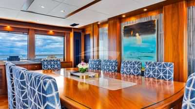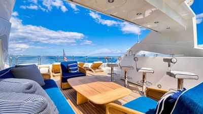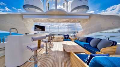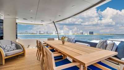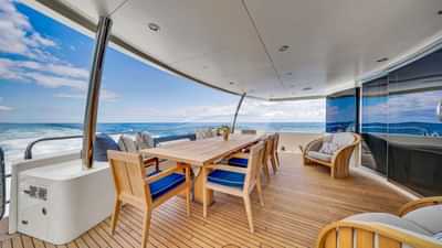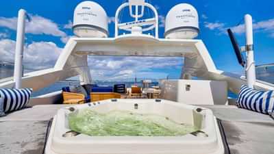 チャーターゲスト用の機内アメニティには、エアコン、バーベキュー、屋外シャワー、屋内オーディオシステム、デッキのジャグジー、衛星テレビ、アンカー付きスタビライザー、スイムプラットフォーム、テレビサルーン、Wi-Fiが含まれます。